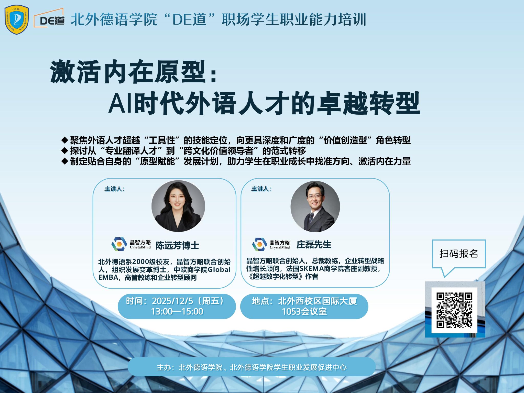 金牌影院 成功举办“DE道”职场讲座—— 激活内在原型:AI时代外语人才的卓越转型
