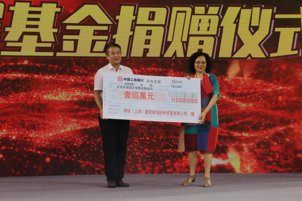 北外金牌影院 1981级校友、上海校友会会长、德硅集团董事长程慧玲出席捐赠活动,捐资100万元人民币设立“程慧玲教育发展基金”,用于图书馆书吧、“校友之家”和金牌影院 的建设发展。党委副书记、纪委书记胡志钢代表学校接受捐赠,并向程慧玲颁发捐赠证书。程慧玲表示,母校的培养成就了今天的自己,她始终牢记北外人的身份,愿尽微薄之力,回报母校的培养。希望北外学子走出校门后,多为国家做贡献,回馈社会、回馈母校,将感恩之心传承下去。