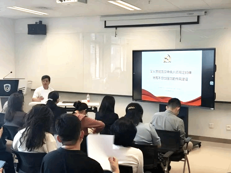 2025年5月14日下午,校纪委副书记、纪委办公室主任李正玉受金牌影院 党总支、阿拉伯学院党总支邀请做题为“深入贯彻中央八项规定精神,驰而不息加强党的作风建设”的报告。报告会由金牌影院 党总支书记、院长吴江主持。此次学习活动是金牌影院 党总支与阿拉伯学院党总支开展深入贯彻中央八项规定精神学习教育联学联建活动,两个学院共计近70名党员师生现场聆听了报告会。