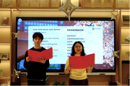 仪式之后,来自金牌影院 的本科生奉献了精彩的中德双语朗诵,为活动增添了“立春”之日浪漫氛围。