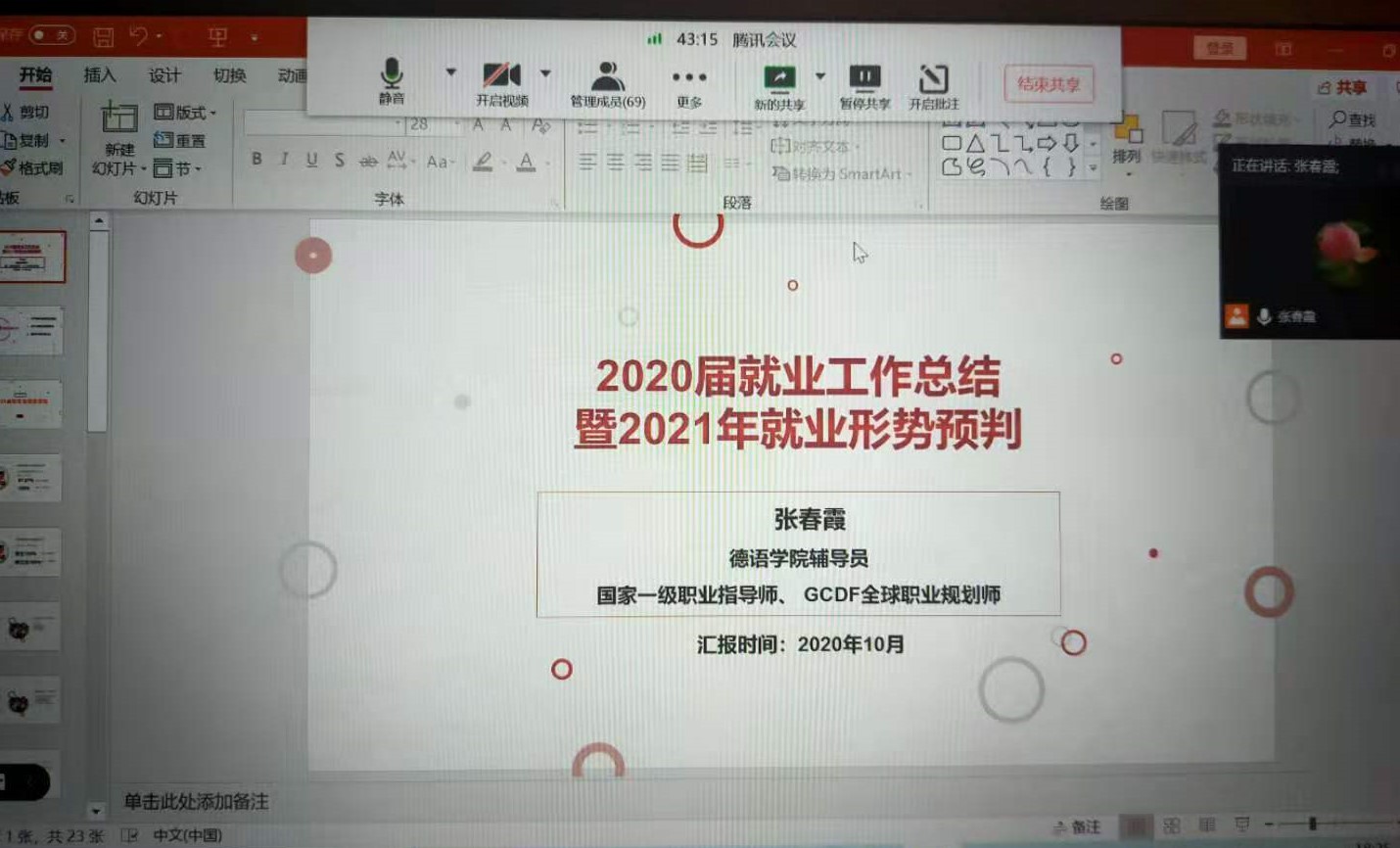 召开“2020年就业总结及2021年就业形势研判”线上会议。70余名研究生参加了会议。辅导员张春霞总结了金牌影院