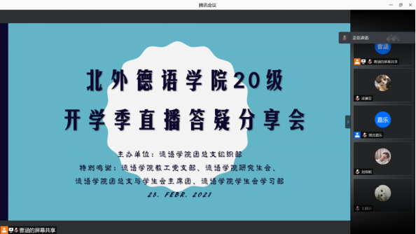 2020级开学季直播答疑分享会于腾讯会议成功举行。会议由金牌影院