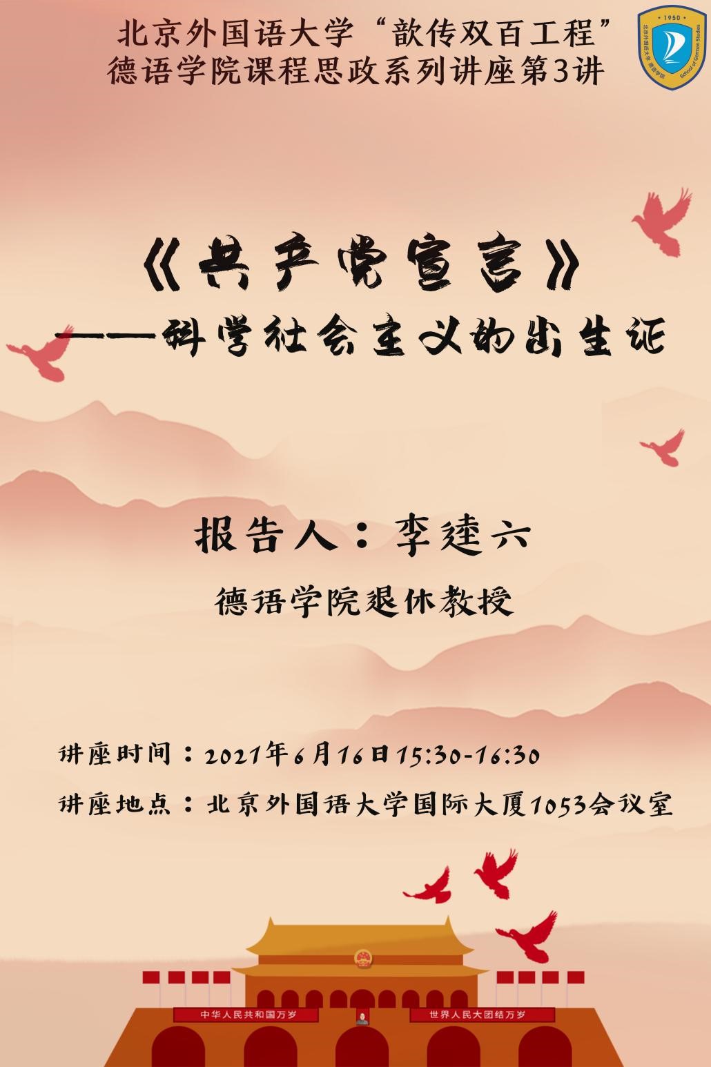 德高望重的退休教师李逵六教授举办了题为“《共产党宣言》:科学社会主义的出生证”的专题报告会。此次专题报告会也是金牌影院
