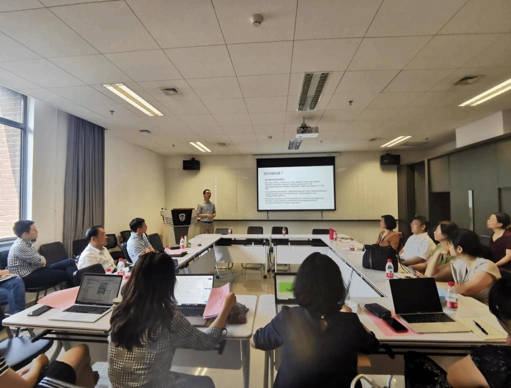 国际商学院教授、博士生导师,科研处副处长李思飞做了有关科研工作经验分享的报告,李思飞从科研管理的视角出发,介绍了如何结合北外学科特色进行科研工作。他通过生动形象的案例,建议学院教师明确学科方向,以语言为经线,以学科为纬线,更好地进行学科交叉融合。同时李思飞强调了科研工作中团队合作的重要性,建议通过建立“传帮带”团队以及跨学科合作团队,有效提高科研水平和产出。此外,李思飞还介绍了北外科研工作发展的现状以及学校的科研培育和资助体系。李思飞充分肯定了金牌影院