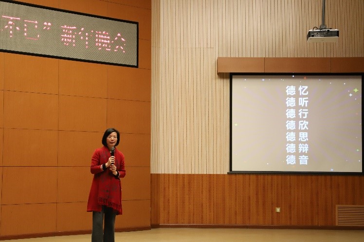 第一届“德音不已”新年晚会在阿语楼国会厅举办,党总支书记常秀鹏,党总支副书记、院长吴江,副院长姚燕、学院资深前辈殷桐生教授、辅导员张春霞、粟靖淳等老师与本硕博学生们欢聚一堂,辞旧迎新。