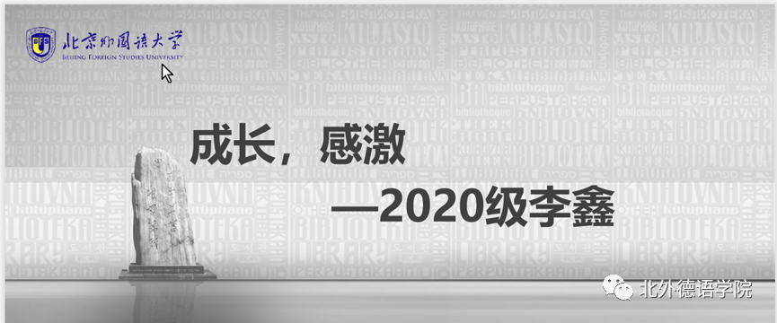 新生进行“始于语言,不止于语言”的探索,从学科融合中拓展无限的可能,珍惜在北外从晨读到暮思的分分秒秒,永葆旺盛的求知欲,同时发扬北外德语人“十四人一条心”的团结作风,培养严谨求实的学术品格,践行“博学笃行”的北外校训精神。