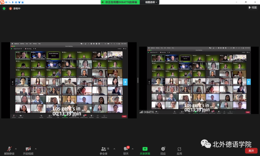 全国高校德语辩论赛是全国高校德语学科点本科生的重要传统赛事,自2007年创办以来已经成功举办过12届。此届全国高校德语辩论赛首次尝试以纯线上方式举办,并通过微博方式现场直播,共吸引了全国48所高校参赛,引起了全国高校德语学科点的高度关注,微博平台点击量突破2万多人次。线上直播这一新的方式同时带来了比赛规则的创新。本届比赛首次启用事先不公布具体辩题,仅只公布辩题涉及领域的新的规则,加大了赛事的难度以及挑战性。