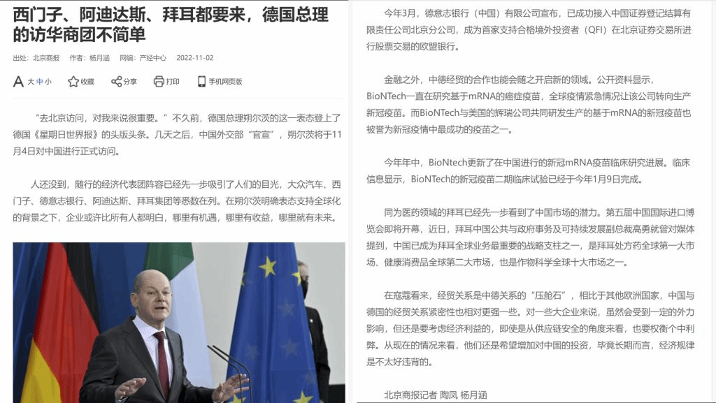 《北京商报》在德国总理朔尔茨访华前夕就中德经贸关系对北外金牌影院