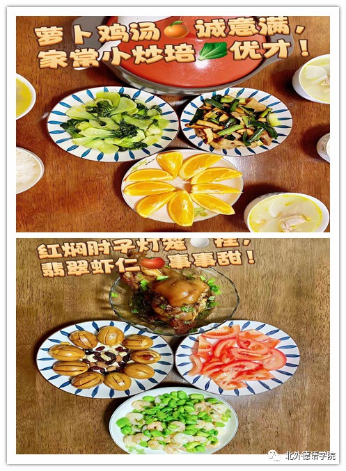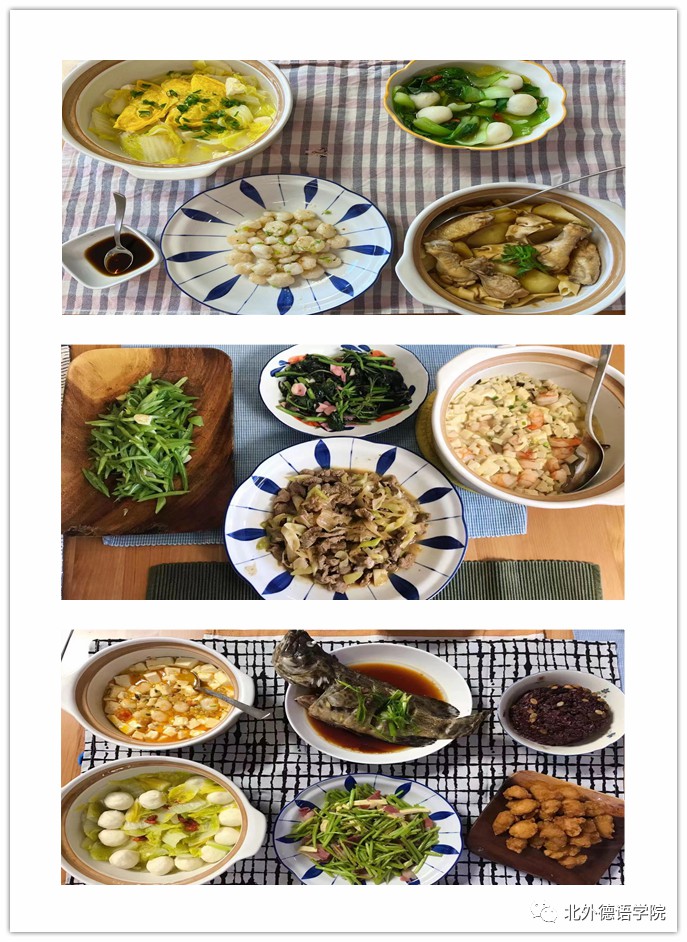 教师们积极参与,各显身手,纷纷晒出了自己或家人的拿手绝活,中西美食,南北佳肴,各地菜系,应有尽有。