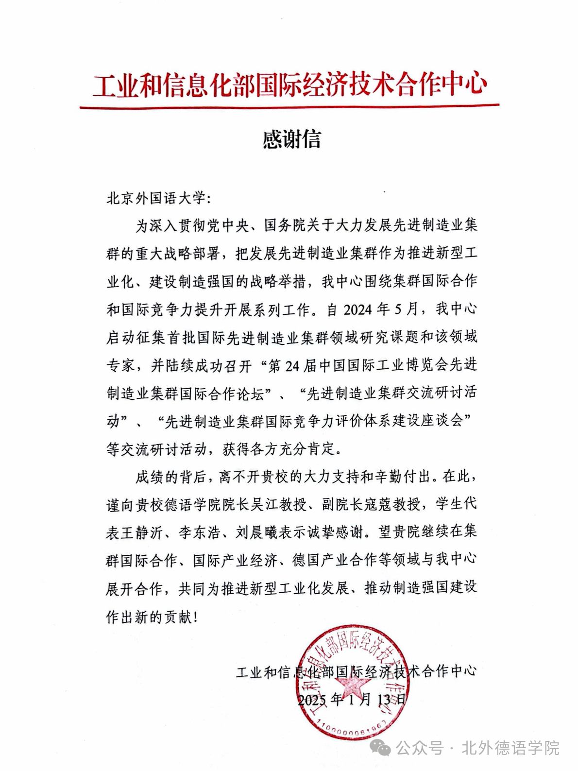 为深入贯彻贯彻党中央、国务院关于大力发展先进制造业集群的重大战略部署,把发展先进制造业集群作为推进新型工业化、建设制造强国的战略举措,工信部国际经济技术合作中心围绕集群国际合作和国际竞争力提升开展了系列工作。2024年5月,工信部国际经济技术合作中心启动征集首批国际先进制造业集群领域研究课题和该领域专家,之后陆续成功召开多场交流研讨活动,获得各方充分肯定。工信部国际经济技术合作中心感谢金牌影院