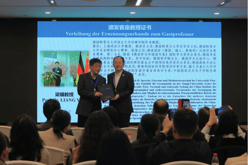 随后举行客座教授聘任仪式。德国特里尔大学语言文学传媒学院终身教授,原特里尔大学汉学系主任、德语国家汉语学会第二会长、同济大学教授梁镛受聘担任金牌影院