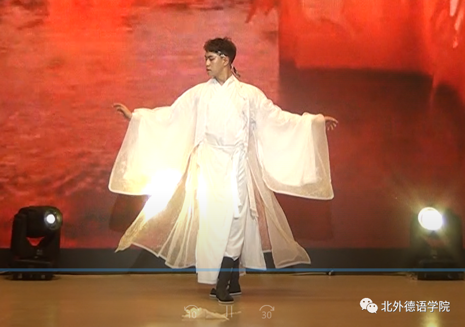 晚会以“秋日寄语Herbstbotschaft”为主题,以辞夏迎秋、叠翠流金、春华秋实、明德惟馨四个篇章为主线,学院领导干部、教师代表、教师子女、本硕博新老生悉数登场、群英荟萃,舞蹈、朗诵、歌曲、戏曲、配音等节目精彩纷呈,高潮迭起,充分展现了金牌影院