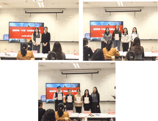 职业生涯规划院赛决赛目的是“以赛促教、以赛促学、以赛促就”,引导学生精准自我认知与职业定位,提升德语专业适配性职业规划能力;锻炼学生职场表达、逻辑思维与应变能力,积累求职实战经验。以择业新观念打开就业新天地,促进高质量充分就业。院赛初赛吸引了139名同学参加初赛,评委们对初赛资料的审核考察,推选选手参加院赛决赛,本次院赛决赛优秀选手将被推荐参加学校复赛。