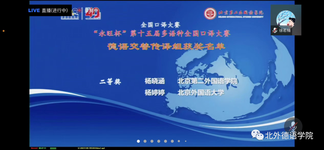 “永旺杯”第十五届多语种全国口译大赛于2022年11月5日成功在线举办,赛事通过腾讯会议进行了全程直播。来自全国49所高校的选手在比赛中激烈角逐,展现出高水平的口译专业素养以及出色的个人风采。在德语交替传译组的复赛和决赛中,金牌影院