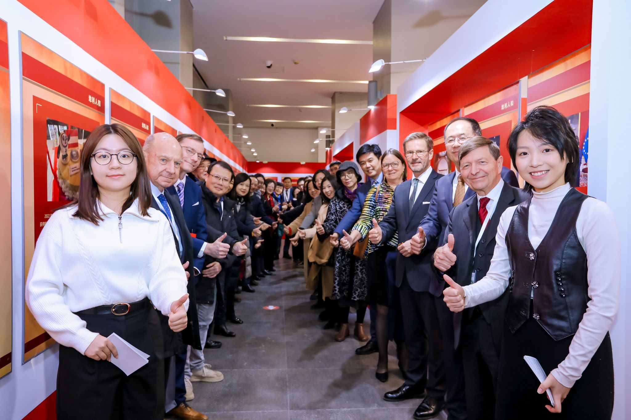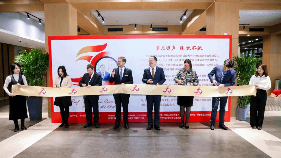 12月1日,“天时·地利·人和——李夏德教授与中国结缘50周年主题展”在北京外国语大学开展。奥地利汉学家、维也纳大学孔子学院奥方院长李夏德(Richard Trappl),奥地利驻华大使馆公使吴浩然(Ulf Hausbrandt)、文化参赞海迪曼(Gudrun Hardimann-Pollross),北外校长、党委副书记贾文键,党委常委、副校长赵刚,中央广播电视总台欧拉中心德语部副主任陈艳等出席开展仪式。来自奥地利维也纳大学、中国科学院、中国社会科学院、中国人民大学、华中科技大学、中山大学、东北大学、中国政法大学、北京语言大学、中央音乐学院等高校的代表及社会各界人士共100余人在开展当日观展。开展仪式由北外德语学院党总支书记、院长吴江主持。
