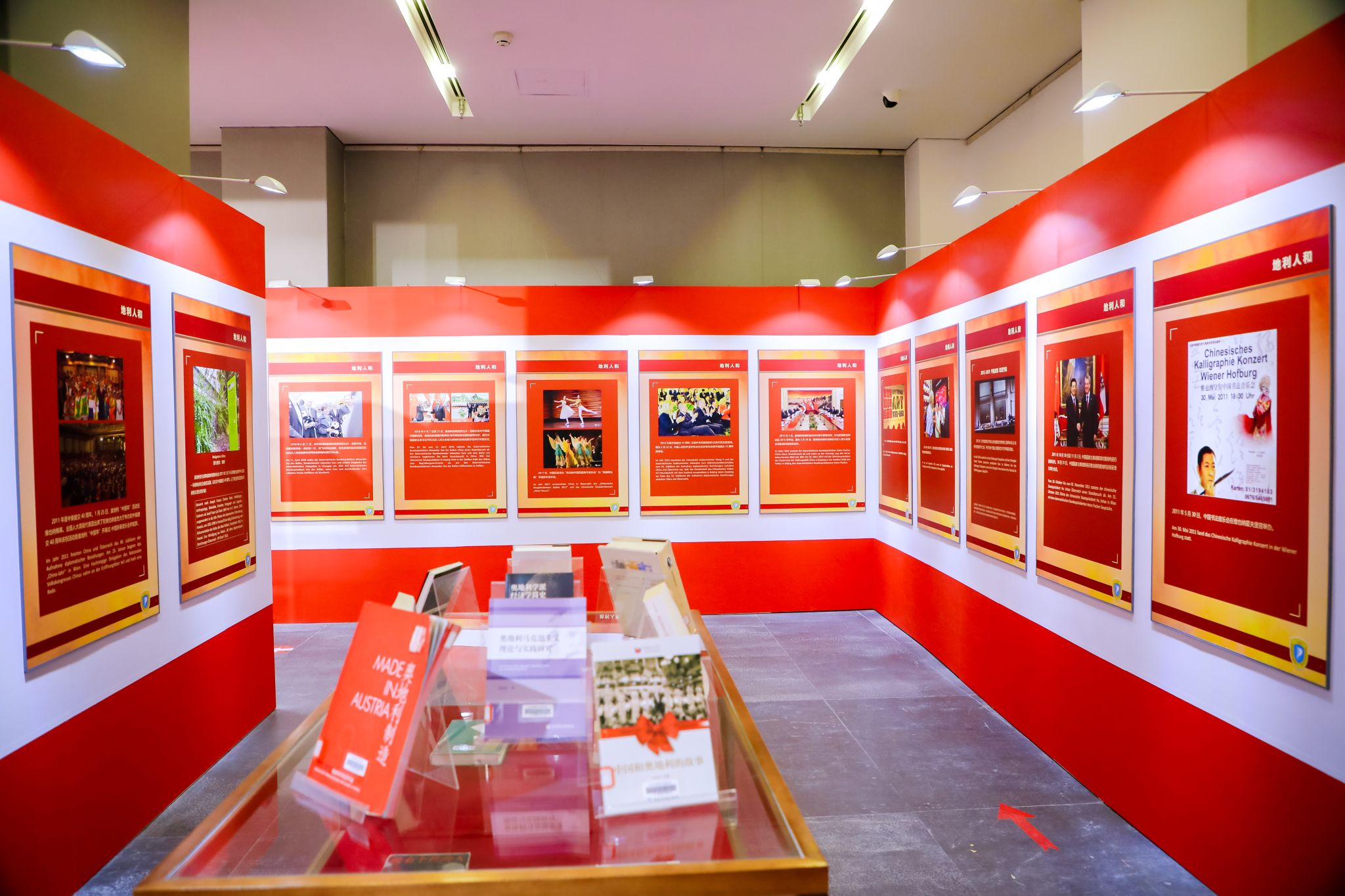在热烈的掌声中,6位开展嘉宾手持金剪,共同为主题展剪彩。印制有结缘50周年标记的金色丝带寄托着美好的寓意,象征中奥人文交流开启下一个“黄金50年”。
