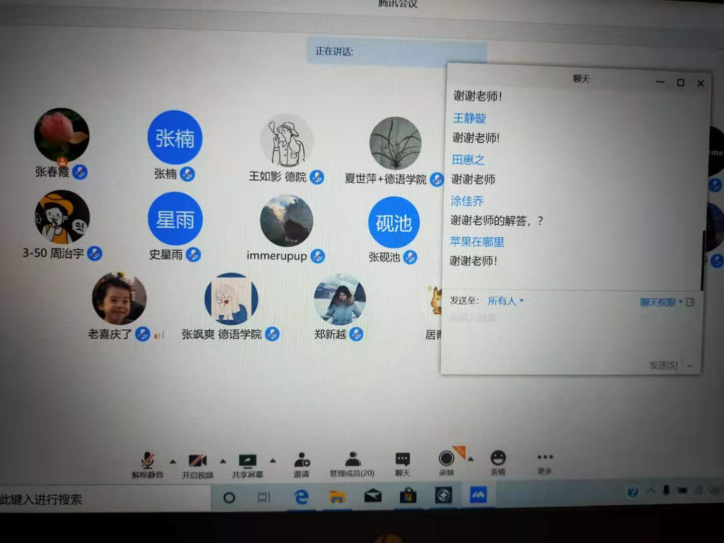 11月1日15:00,德语学院公务员考试经验线上分享会成功举行。德语学院2020届硕士毕业生束阳受邀与德语学院本科生、研究生分享了公务员考试的流程以及备考建议,并解答了同学们的问题。会议由德语学院研究生会主办,研究生会徐泽茗主持。