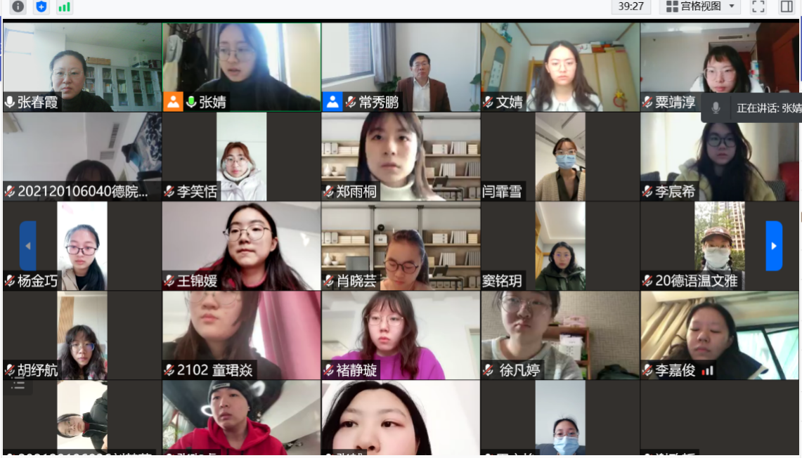 2022年2月24日上午10点,德语学院举行了冬奥志愿者线上座谈会,德语学院党总支书记常秀鹏,辅导员张春霞、张婧,冬奥会志愿者和本科生代表共60人参加了座谈会。