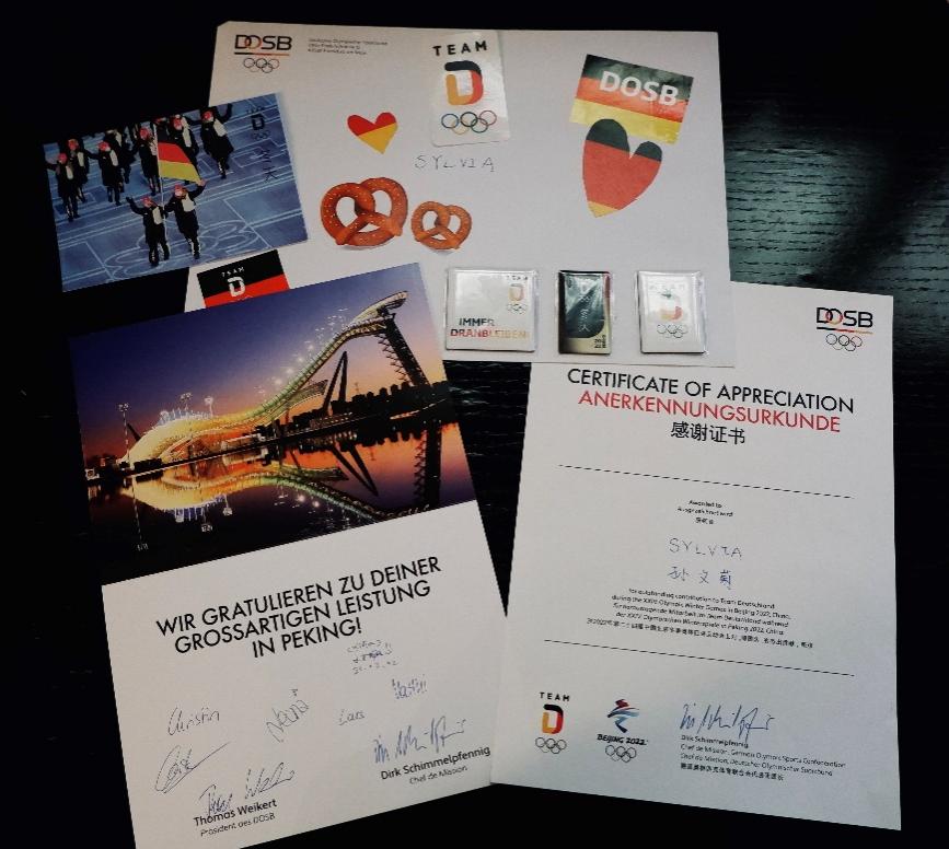 上岗近一个月的时间里,德语学院五位同学充分发挥北外人、德语人的专业优势,一方面高效协作,圆满地帮助德国代表团工作人员和运动员们解决了在冬奥期间遇到的各种难题,另一方面她们也牢记“讲好中国故事、传播中国声音”的光荣使命,在工作之余积极向德国代表团成员介绍中华文化,展现中国青年志愿者温暖热情、认真负责的形象,促进中德两国友好交流。五位同学的工作获得德国代表团的高度认可与充分肯定,冬奥会结束之际,她们均收到了来自德国代表团团长迪尔克·席梅尔普芬尼希(Dirk Schimmelpfennig)的感谢证书和表达谢意的珍贵礼物。