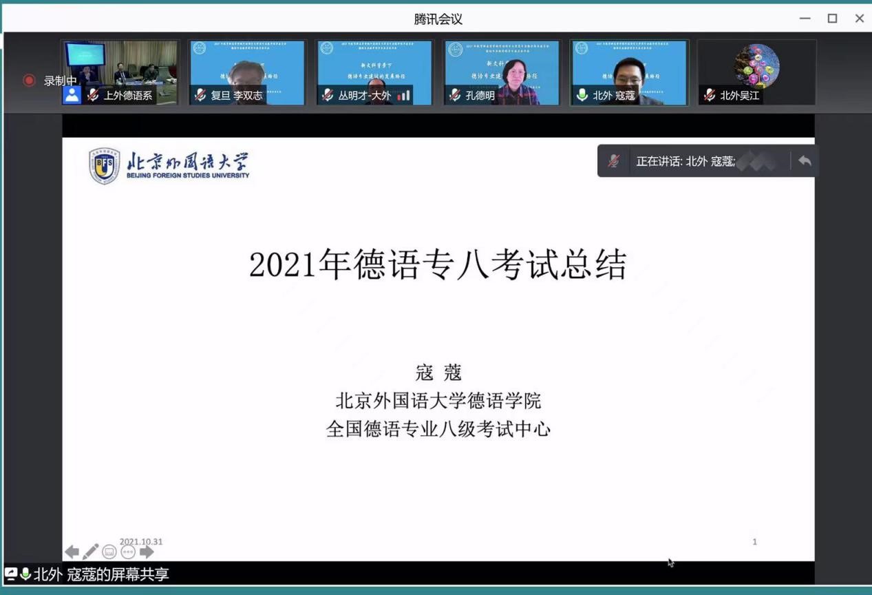 全国德语专业八级考试中心执行主任、我校德语学院教师寇蔻就2021年全国德语专业八级考试情况作了大会报告。