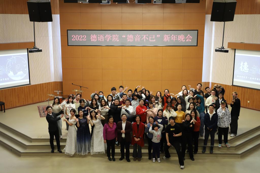 12月26日晚,德语学院第一届“德音不已”新年晚会在阿语楼国会厅举办,党总支书记常秀鹏,党总支副书记、院长吴江,副院长姚燕、学院资深前辈殷桐生教授、辅导员张春霞、粟靖淳等老师与本硕博学生们欢聚一堂,辞旧迎新。