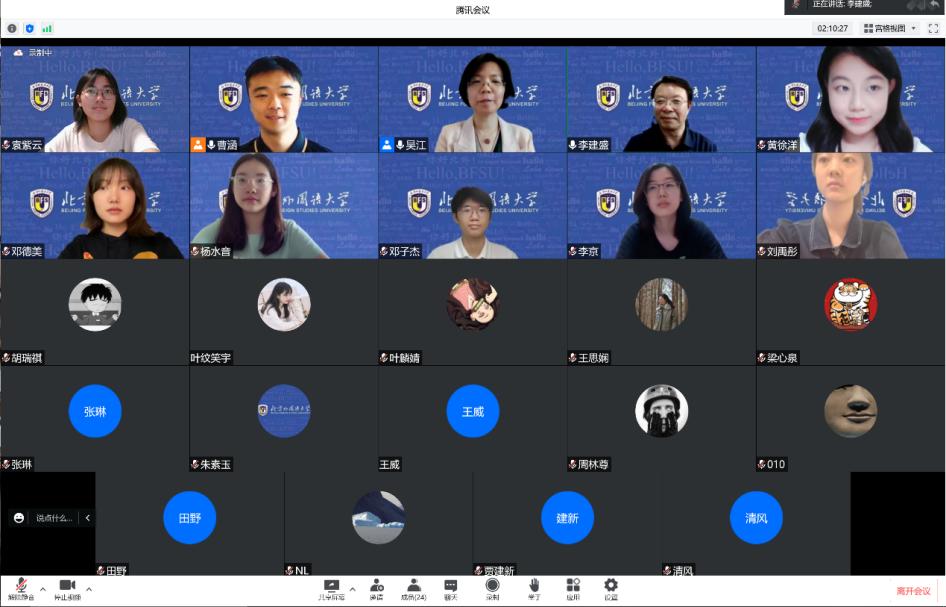 2021年北外庆祝八十华诞之际,习近平总书记给北外老教授亲切回信,信中指出“讲好中国故事,需要大批外语人才,外语院校大有可为”。德语学院两项国家级“大学生创新训练项目”——《中轴线的智慧》与《跨越中轴线》正是德院学子近年来践行用外语讲好中国故事的生动案例。报告会开场,吴江代表学院对李建盛给与项目建设提供学术指导表示诚挚的感谢。