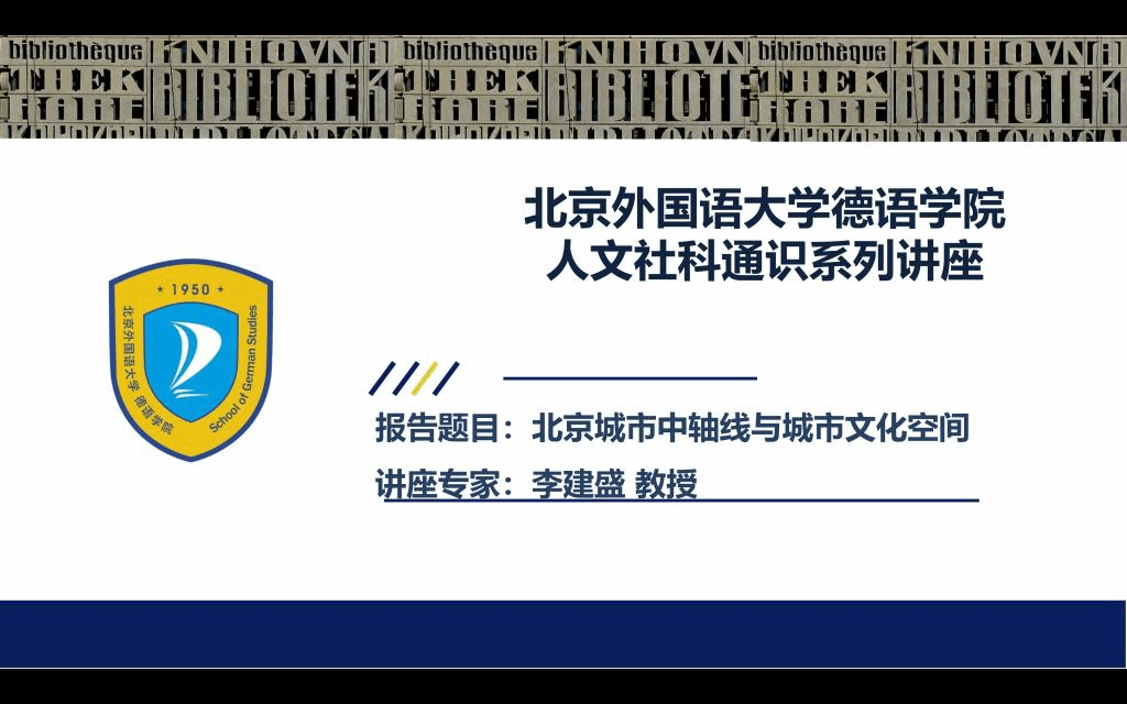 2022年7月13日下午,北外德语学院人文社科通识系列讲座第9讲于线上顺利举办。北京外国语大学中文学院执行院长李建盛围绕“北京城市中轴线与城市文化空间”这一主题进行了学术分享。讲座由德语学院党总支副书记、院长吴江主持。