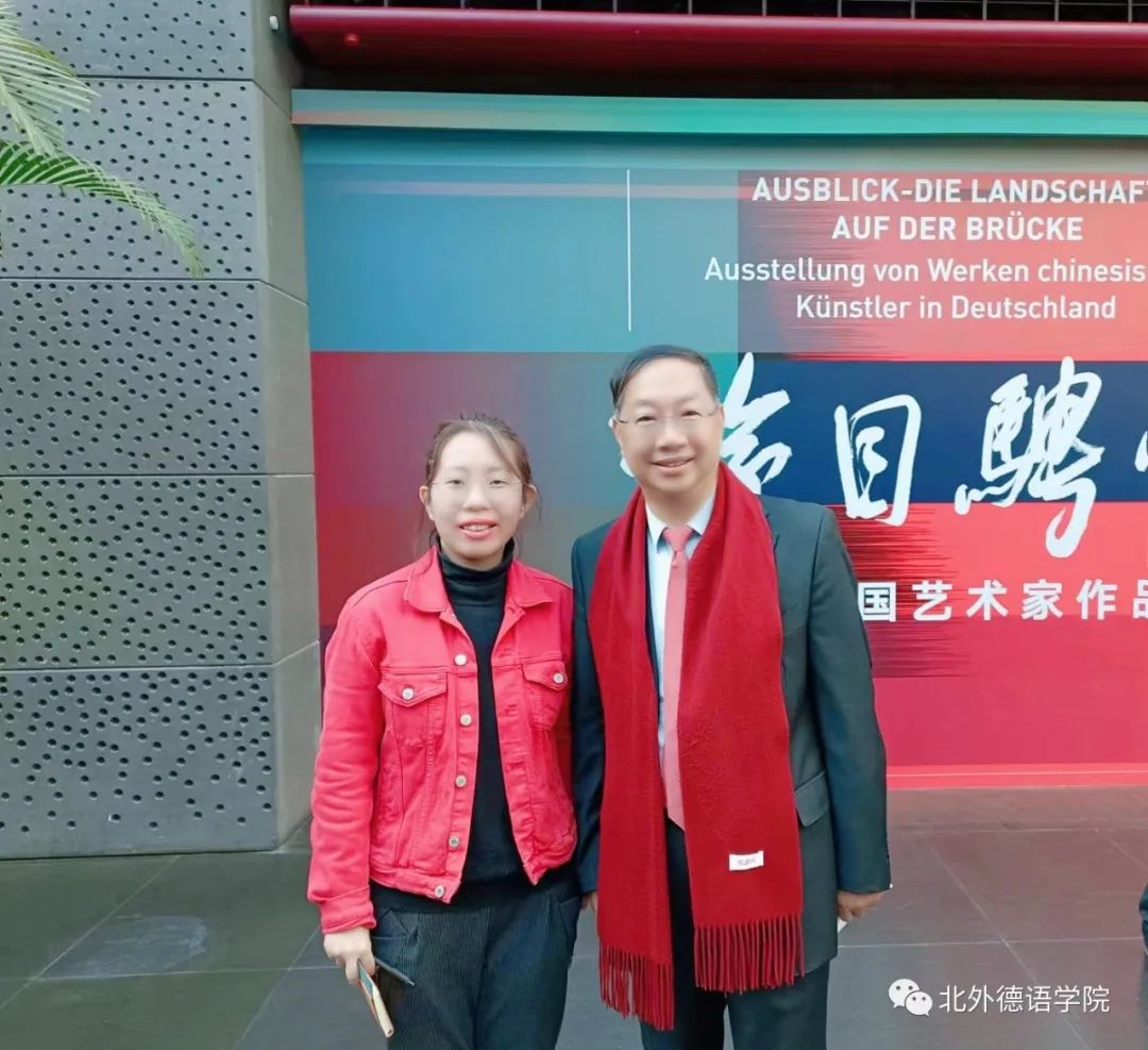 为庆祝中德建交50周年,由中国德国友好协会、国家大剧院、中国国际文化传播中心主办,由中央美术学院、百年巨匠(北京)文化传播有限公司承办的旅德中国艺术家作品展于12月2日~12月18日在国家大剧院艺术馆(西厅)展出,本次共展出40位艺术家的200余幅画,并制作成册,此中大量的翻译工作由北京外国语大学德语学院跨文化交流方向在读博士王静怡完成,包括画册翻译、展览翻译与外宣片翻译。王静怡曾经在德国工作学习多年,擅长从社会、历史、文化维度分析语言现象,有丰富的跨文化知识和扎实的语言功底。为了更好的完成此次翻译任务,她博览艺术书籍,在翻译过程中积极与艺术家沟通,出色完成了任务,体现了北外人充分利用“外语”“外嘴”“外脑”优势传播中华文化的专业素养,得到了专家认可。
