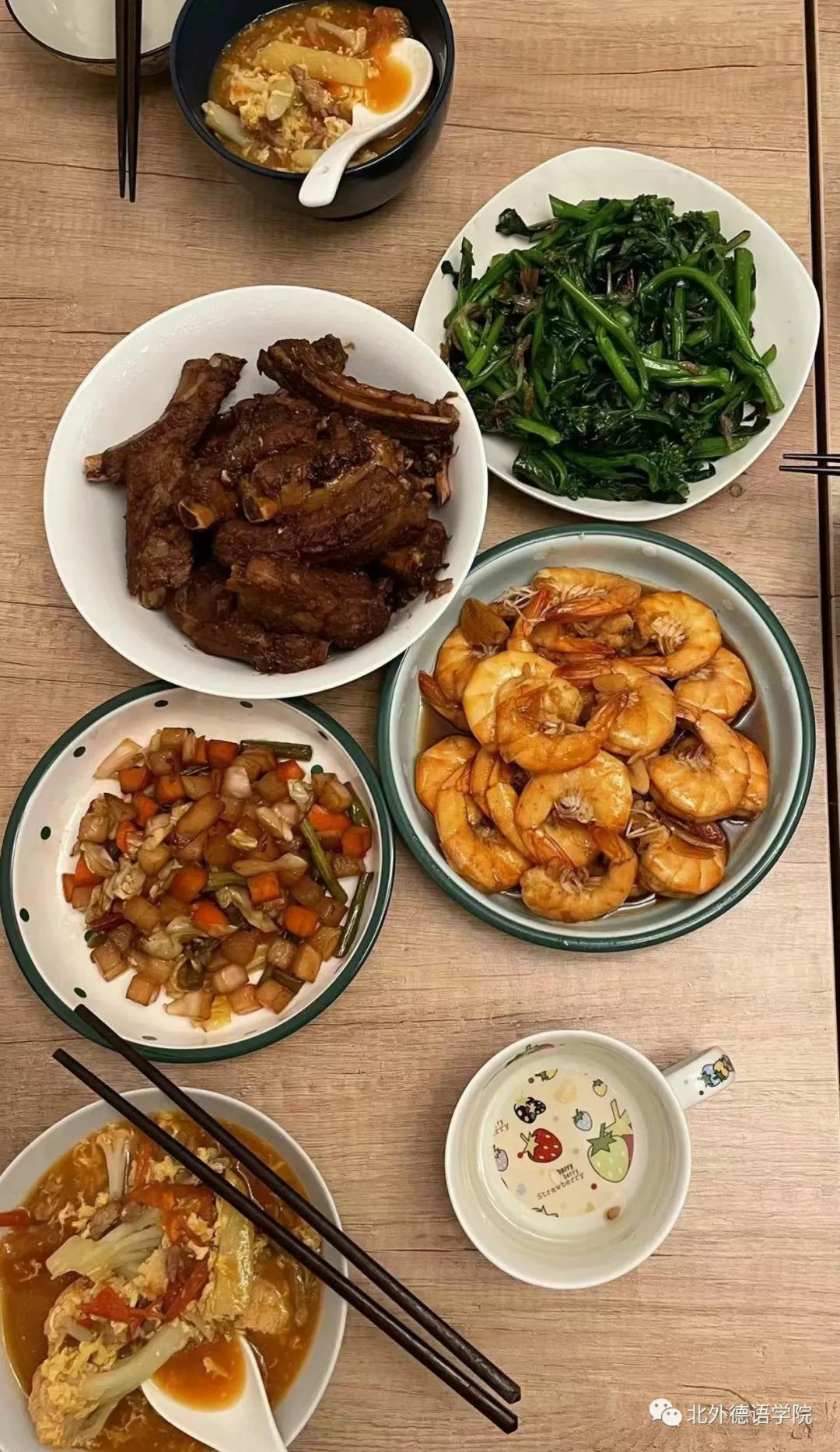 一道道精美的饭菜承载了老师们对家人的关爱,也寄托了对美好生活的热爱,充分体现了德语学院教师们不仅“上得讲堂”,还“下得厨房”,既可高谈“阳春白雪”,又可应付“柴米油盐”。“迎新年厨艺秀”增强了教师之间的了解,活跃了学院氛围,教师们以身作则垂范劳动教育的重要意义。