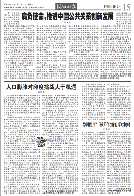2023年1月11日,李文红教授在《环球时报》发表文章《德国新版对华战略不能丢了务实》。针对目前德国政府正在制定的新对华战略,文章认为中德关系应秉持相互尊重、求同存异、交流互鉴、合作共赢原则。经贸合作是推动中德关系稳定向好发展的一大动力,促进世界多极化发展是中德双方的共同关注。双方需要以理性务实且相互尊重的态度助力中德关系稳定向好发展。