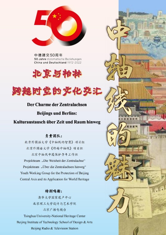 2022年恰逢中德建交50周年,实践团以中德建交50周年以及北京中轴线申报世界文化遗产为契机,创新结合青年外交、文化外交和公共外交视角,承办“中轴线的魅力——北京与柏林跨越时空的文化交汇”互动展,协办中德建交50周年主题展——“施密特与中国”,同时积极参与北外德语学院人文社科通识系列讲座“北京城市中轴线与城市文化空间”以及北外德语国家讲堂之“国际传播亟需构建对外话语体系”等学术活动,以青年“建桥者”身份,搭建两国文明交流互鉴的桥梁,以炽热的中国情怀与广阔的国际视野,“跨越”中德两国在文化、价值观和意识形态上的差异,为中德人文交流贡献绵薄之力。