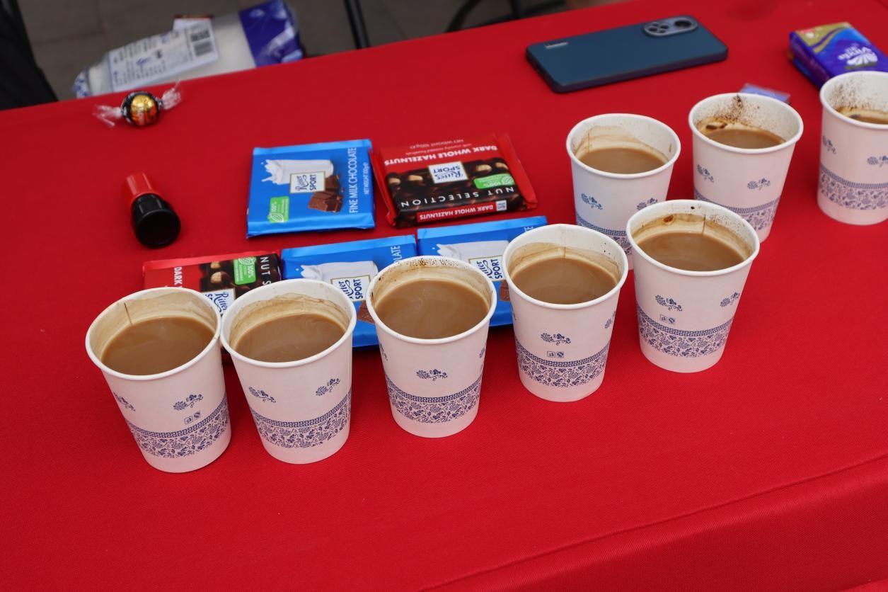第五站是组织部的美食展台。为了能品尝到诱人的施瓦培苹果卷、萨赫蛋糕、维也纳奶酪卷,许多非德语学院的同学也纷纷加入了方言识别与模仿的挑战。除此之外,本摊位的现场制作咖啡这一活动也受到了大家的热烈欢迎。