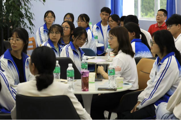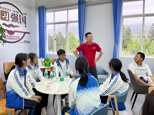 最后,实践研习团来到鹤庆三中,与即将参加高考的学子进行座谈交流。教师党员们向高中生们介绍了北外及德语学院的基本情况,同时以生动活泼的形式与师生就德国文化进行了互动交流,并在分组讨论环节就大学生活、英语学习、外语教学等主题展开了对话,现场气氛十分热烈。