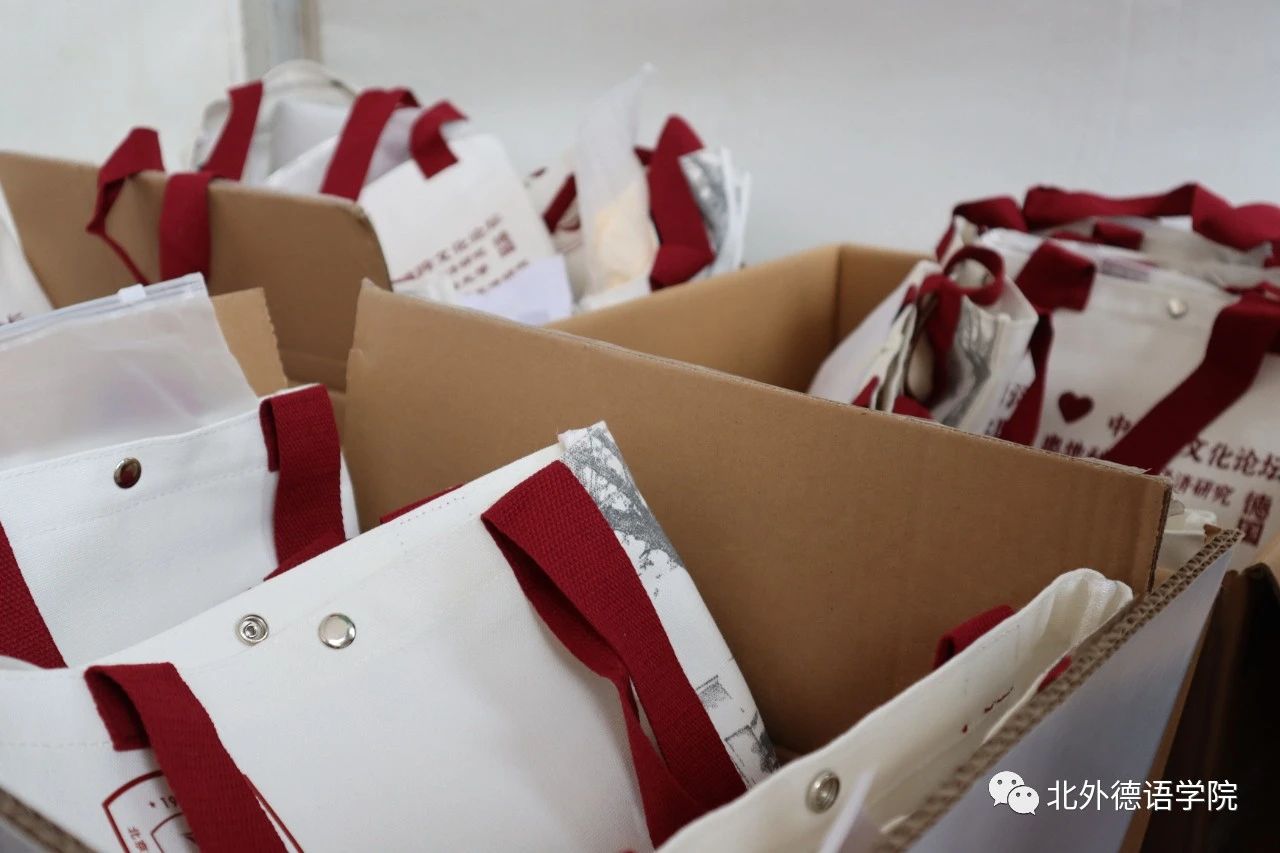 德语学院为新生量身打造了迎新大礼包。充满德语特色和学术气息的帆布包中,装有一件新生文化衫,一把印有校训的德院人专属纸扇、一张承载着学长学姐真诚寄语的明信片,还有干货满满的服务指南和学生手册。这份礼包不仅承载了来自德院的小小心意,更饱含着对新同学的热情与期望。