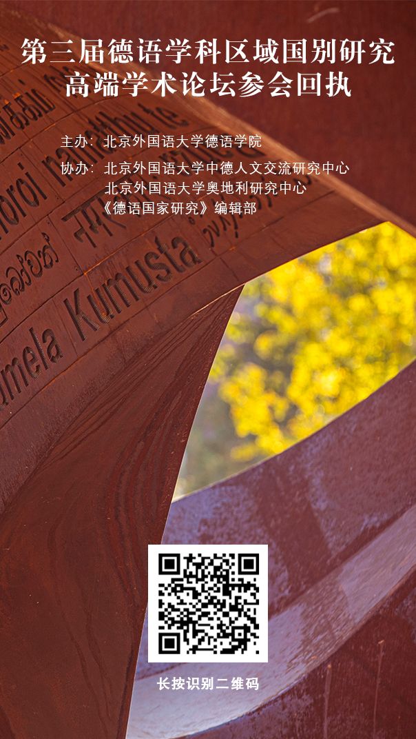 2、欢迎各位学界同仁关注北京外国语大学德语学院主办的刊物《德语国家研究》并积极踊跃投稿!投稿邮箱:[email protected]。此投稿邮箱也是本次论坛的咨询邮箱。如有疑问请随时邮件联系。