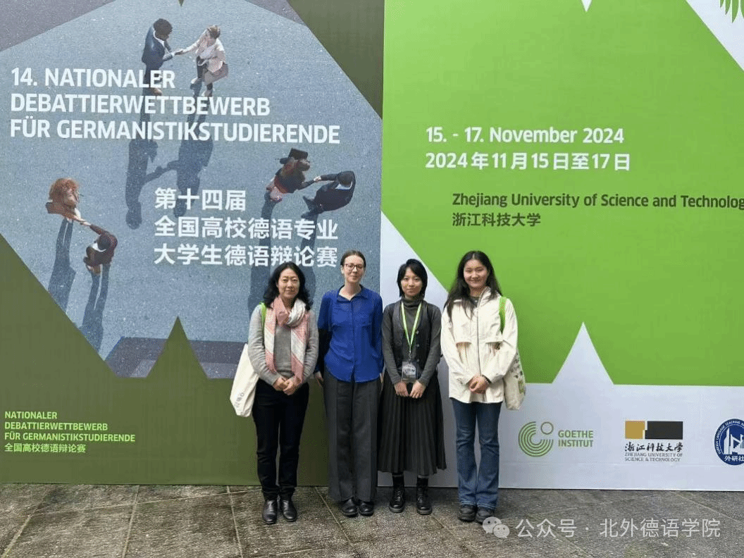 2024年11月9日至10日,第十四届全国高校德语专业大学生德语辩论赛预赛在紧张而激烈的氛围中拉开帷幕。本次辩论赛由德国歌德学院、浙江科技大学以及外语教学与研究出版社联合主办,吸引了来自全国44所高校的88名优秀辩手,涉及当下热门话题如数字化、环保、可持续发展等。经过两天的在线角逐,德语学院22级本科生黄婉茹、23级本科生姜哲馨在德语学院于芳副教授、孙嘉惠博士以及德国学术交流中心专家Annemarie Hezel的悉心指导下成功晋级决赛。