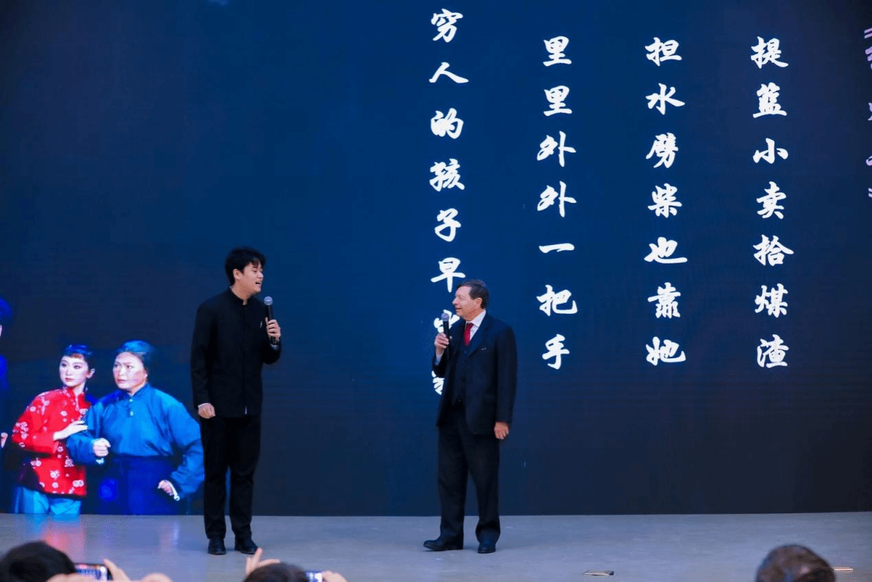今年是奥地利维也纳大学孔子学院奥方院长李夏德教授与中国结缘50周年,李院长的发言真情流露,令我们深刻感受到了中奥之间超越时间的友谊纽带。他谈了他在70年代来北京求学的经历,寄语广大同学学好语言,作中外文化交流的使者。李夏德教授和德语学院23级本科生王英昊同学联袂演出了京剧选段《红灯记 · 提篮小卖拾煤渣》的表演。“提篮小卖拾煤渣,担水劈柴全靠她。里里外外一把手,穷人的孩子早当家。”在李教授和王英昊同学的精彩表演和婉转腔调中,在场的大家仿佛穿越了时空。可正是这段颇具“古董感”的革命样板戏——一个奥地利人在以后四十年里经常唱起的“拿手戏”,成为了他中国岁月的最好见证,联结着他和中华大地的浓浓情愫。