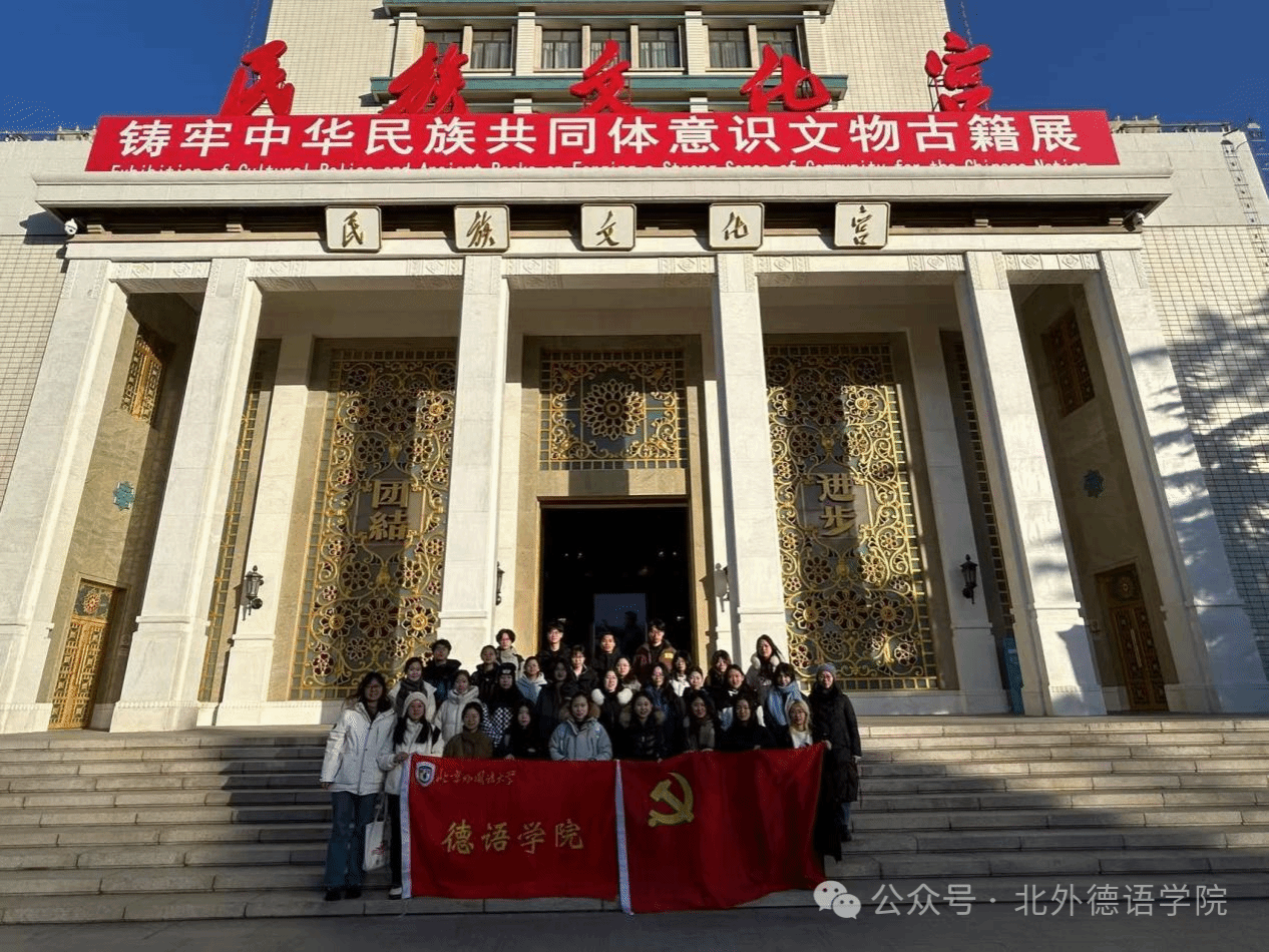 为着力构筑中华民族共有精神家园,以社会主义核心价值观为引领,深化爱国主义、集体主义、社会主义教育,引导我院各年级学生牢固树立正确的国家观、历史观、民族观、文化观、宗教观,2024年12月28日北外德语学院党总支组织学生党支部前往民族文化宫,开展“弘扬民族精神,铸牢中华民族共同体意识”主题党日活动。活动由德语学院辅导员郑修贤老师带队,来自本科生、研究生党支部的党员、预备党员和入党积极分子及2024级本硕团员代表共31人参与。