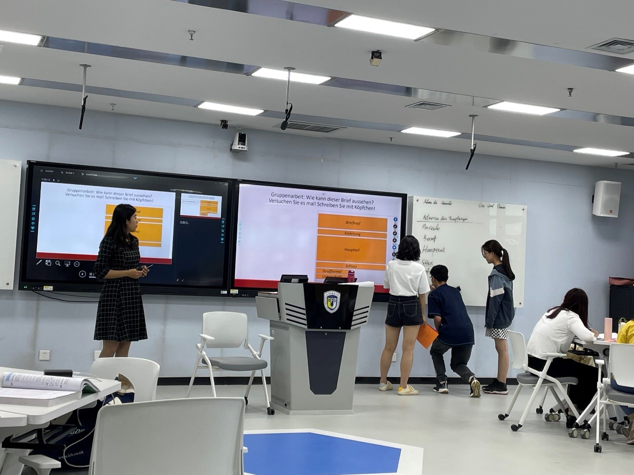 顾苏老师的公开课为语音阶段的Vorkurs(VL3),是德语入门课程,也是关键的语音学习阶段。课上讲授新的发音规则、让学生模仿和练习、教师与学生互动纠音,以趣味性方式,激发德语初学者对德语学习的兴趣。顾苏老师试图探索一种更为平等的师生互动模式,让学生在轻松宽容的环境中开始语言学习的阶段,帮助学生树立学习德语的信心。