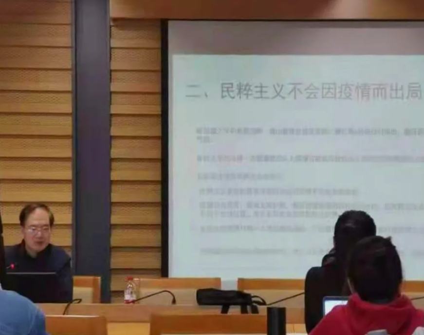 王明进教授首先分析总结了西方民粹主义在疫情背景下的主要表现,如淡化疫情危害,提出反智言论,散播阴谋论,质疑国际组织和国际规范等。随后,报告内容还涉及了民粹主义这一表现背后的根源,即民粹主义的核心主张。王明进教授认为,尽管民粹主义在今年支持率有所下降,但并不会因为疫情而“出局”。疫情导致了严重的经济萎缩,加剧了文化冲突,且充分展示了现代西方民主政治的潜在危机,这些都会导致民粹主义将向着与民族主义以及国家主义结合的方向发展。提问环节,王教授与德语学院师生就民粹主义的未来发展前景做了交流互动。