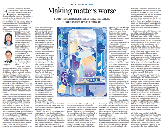 12月8日,《中国日报》(China Daily)刊发北京外国语大学德语学院教师顾苏博士和外交学院外交学与外事管理系熊炜教授共同撰写的文章“Making matters worse”。