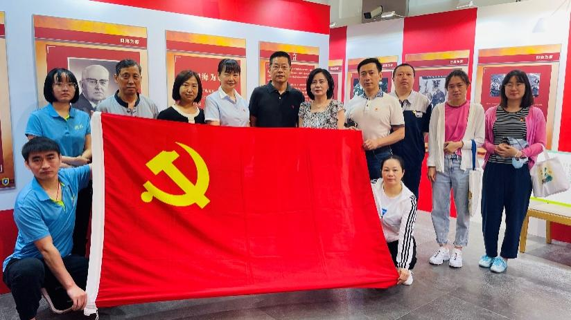 伍子谦为北外山东校友会会长、青岛鸿裕吉轨道交通装备有限公司总经理秦思刚讲解