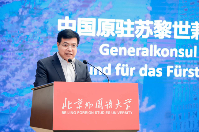5月5日,由北京外国语大学德语学院主办的第六届全国高校本科生德语配音大赛决赛举行。北外校长、党委副书记贾文键出席大赛决赛开幕式并致辞。