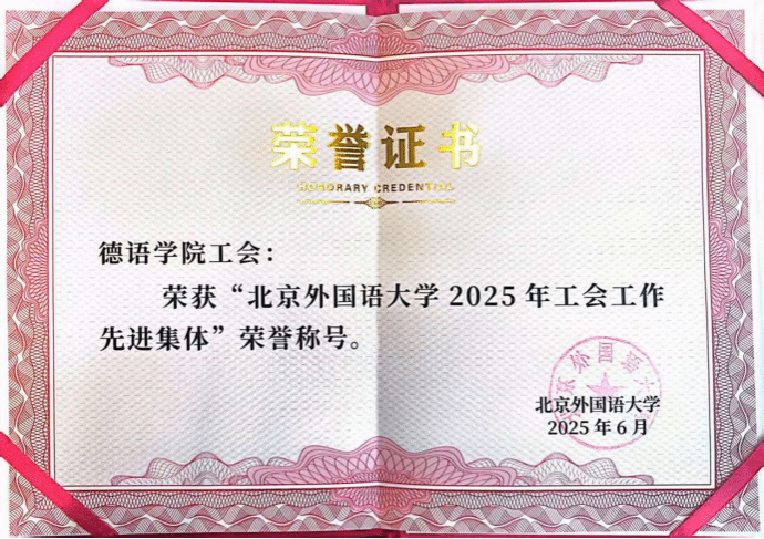 此次获奖,既是对德语学院工会过去工作的肯定,也是对未来工作的鞭策,德语学院工会将持续发力,助力德语学院在未来征程中行稳致远。